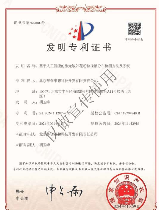 花粉粒徑譜分布檢測(cè)方法及系統(tǒng)獲得國(guó)家發(fā)明專利
